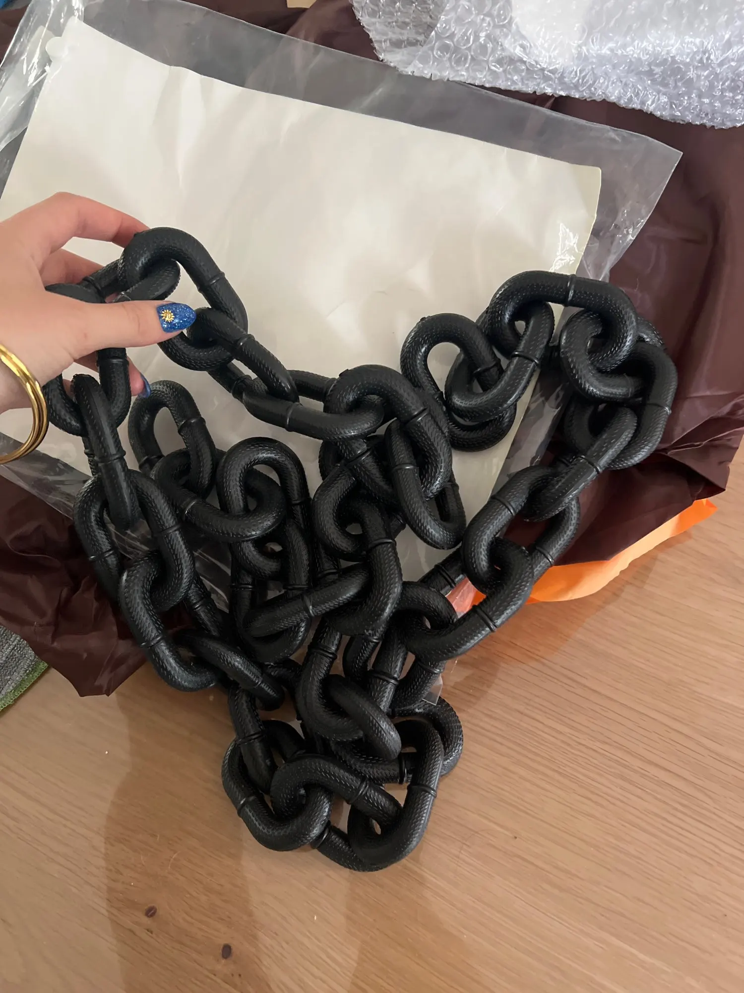 1.5m plastic simulation chain leash for pets, perfect as a fun Halloween prop or novelty accessory. Lightweight and safe, adds playful style to walks or festive occasions.