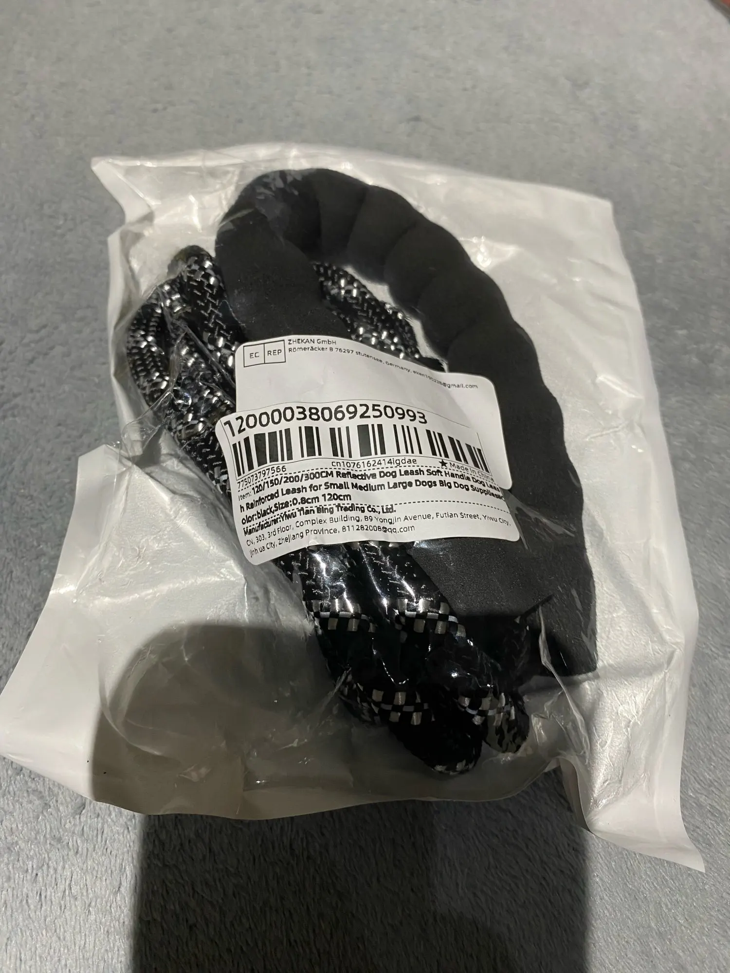Reflective dog leash available in 120, 150, 200, and 300 cm lengths. Features a soft, comfortable handle and reinforced design—perfect for small to large dogs and everyday walks.