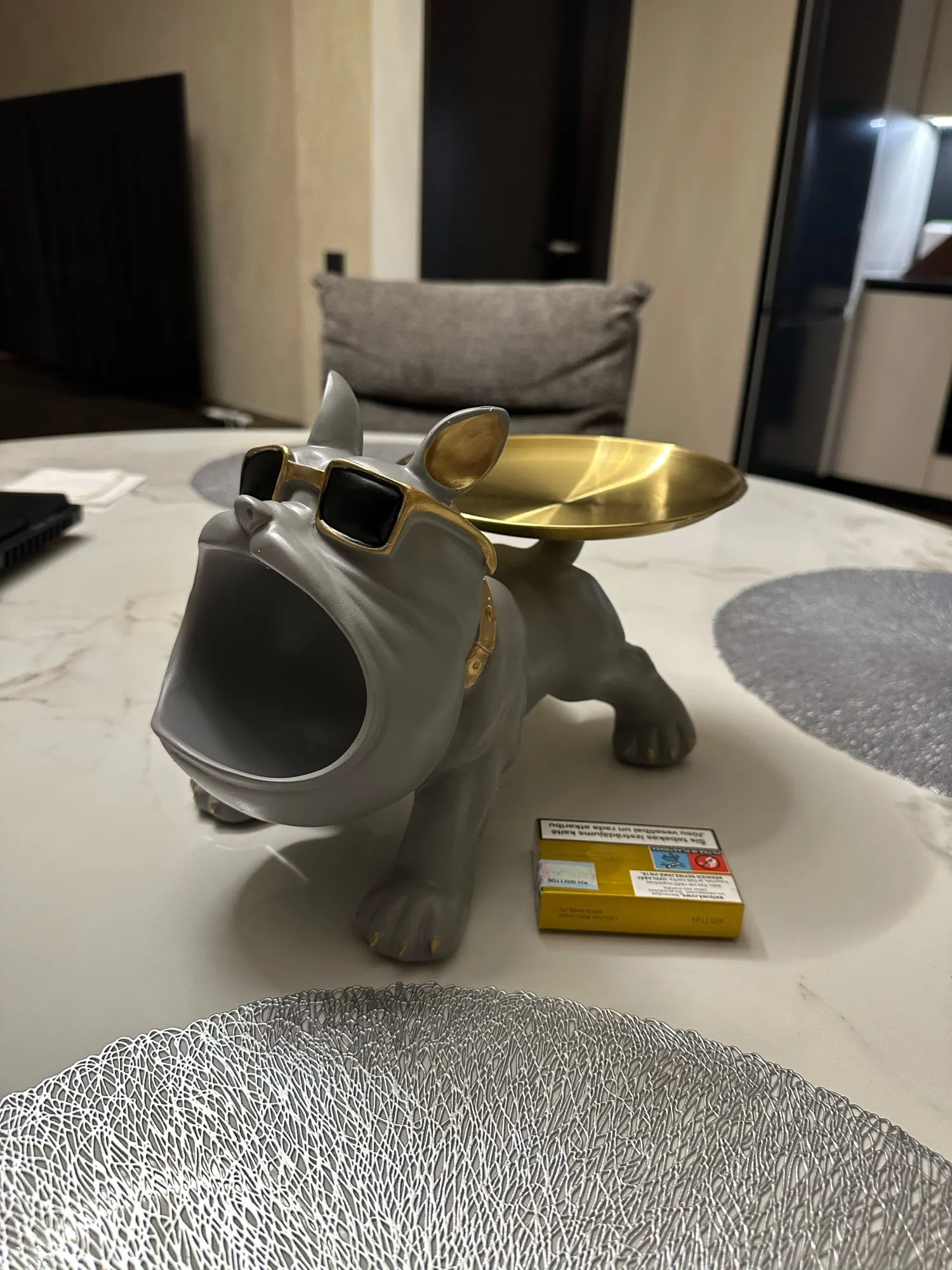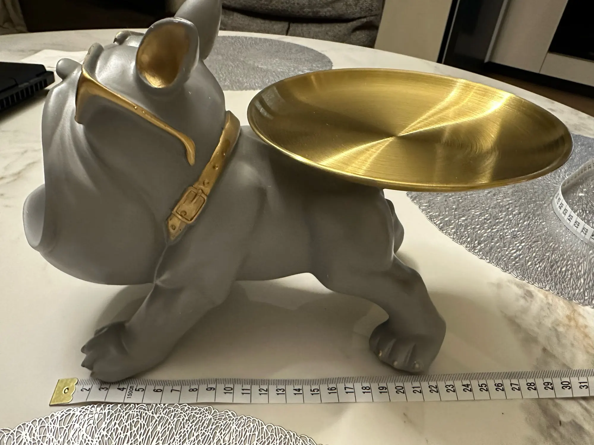Very nice bulldog, arrived quickly, almost in 2 weeks, packed in foam and a box, the plate is packed separately, the plate is steel, held on a quality double-sided stand, I recommend the product and the seller.