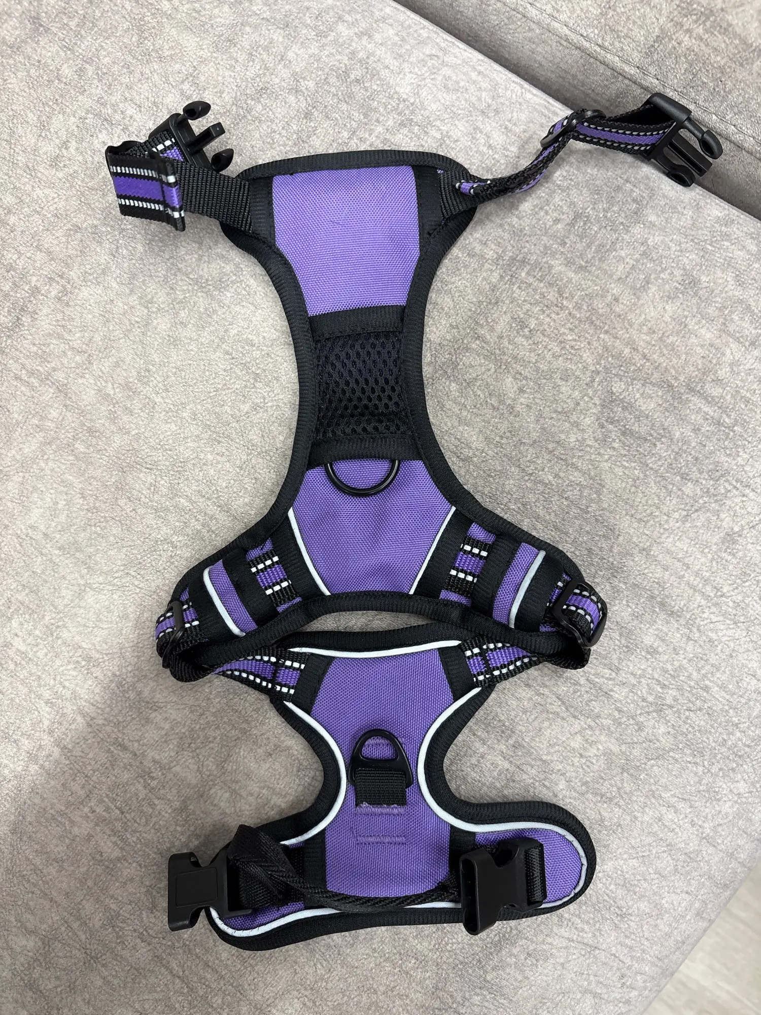Soft, breathable no-pull harness with reflective straps. Adjustable for small to large dogs, providing comfort, control, and safety during walks or outdoor activities.