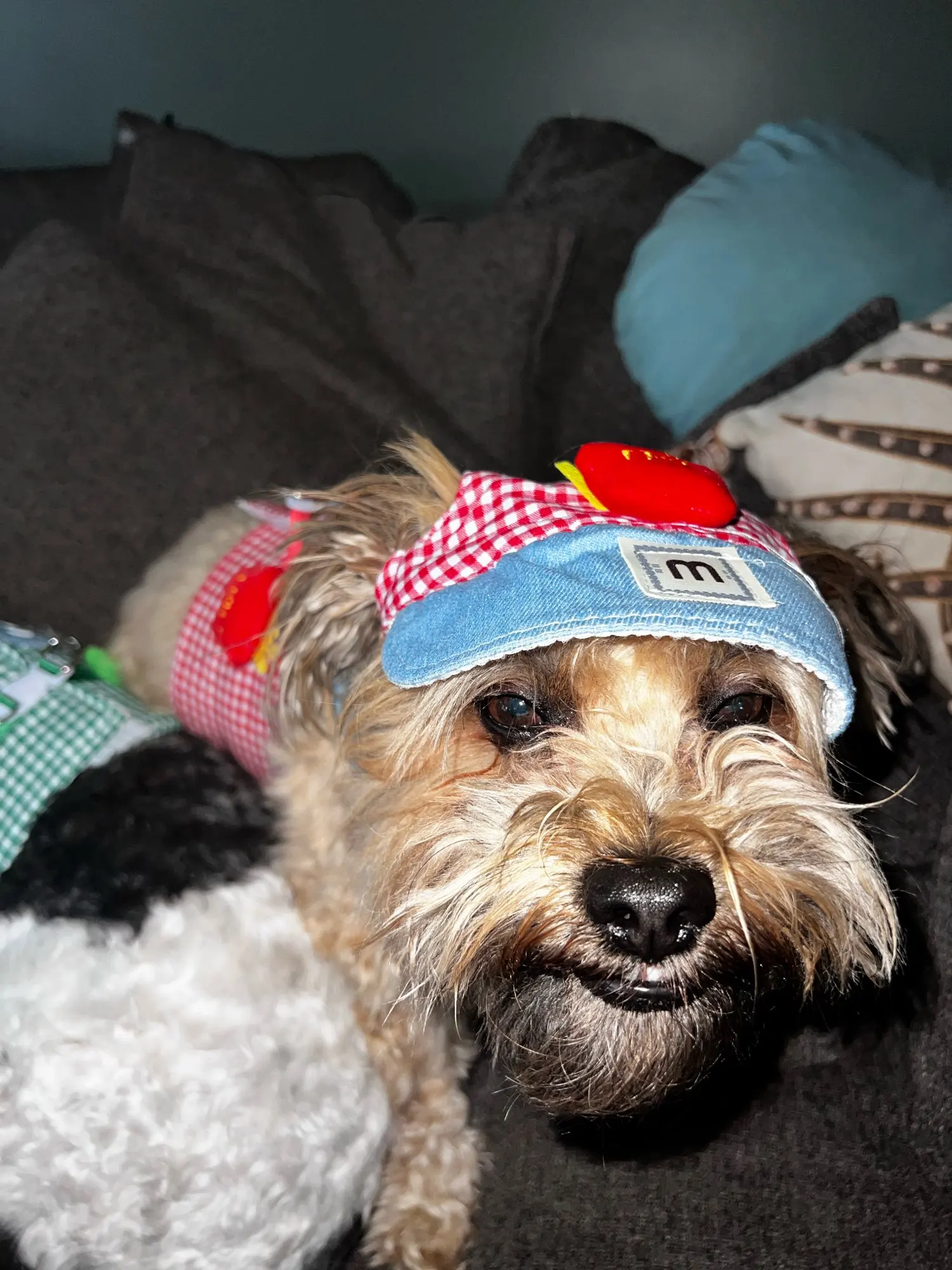 Adorable 3-piece set including vest harness, leash, and sun hat. Perfect for small dogs and cats, providing comfort, control, and playful style for outdoor walks.