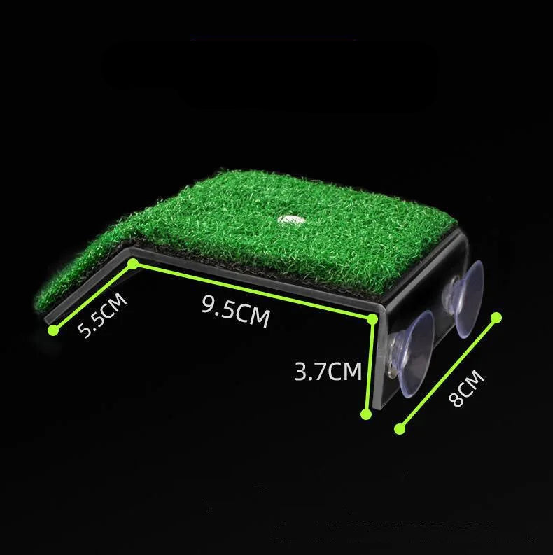 Provide your aquatic pets with a safe and comfortable sunbathing area with this turtle ramp. Covered with artificial grass turf, it encourages climbing, promotes healthy nail wear, and allows turtles to bask naturally. Equipped with suction cups, it securely attaches to glass or acrylic tanks.