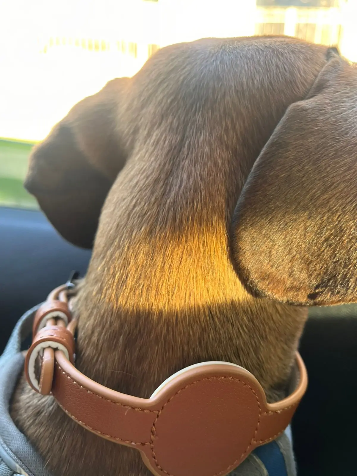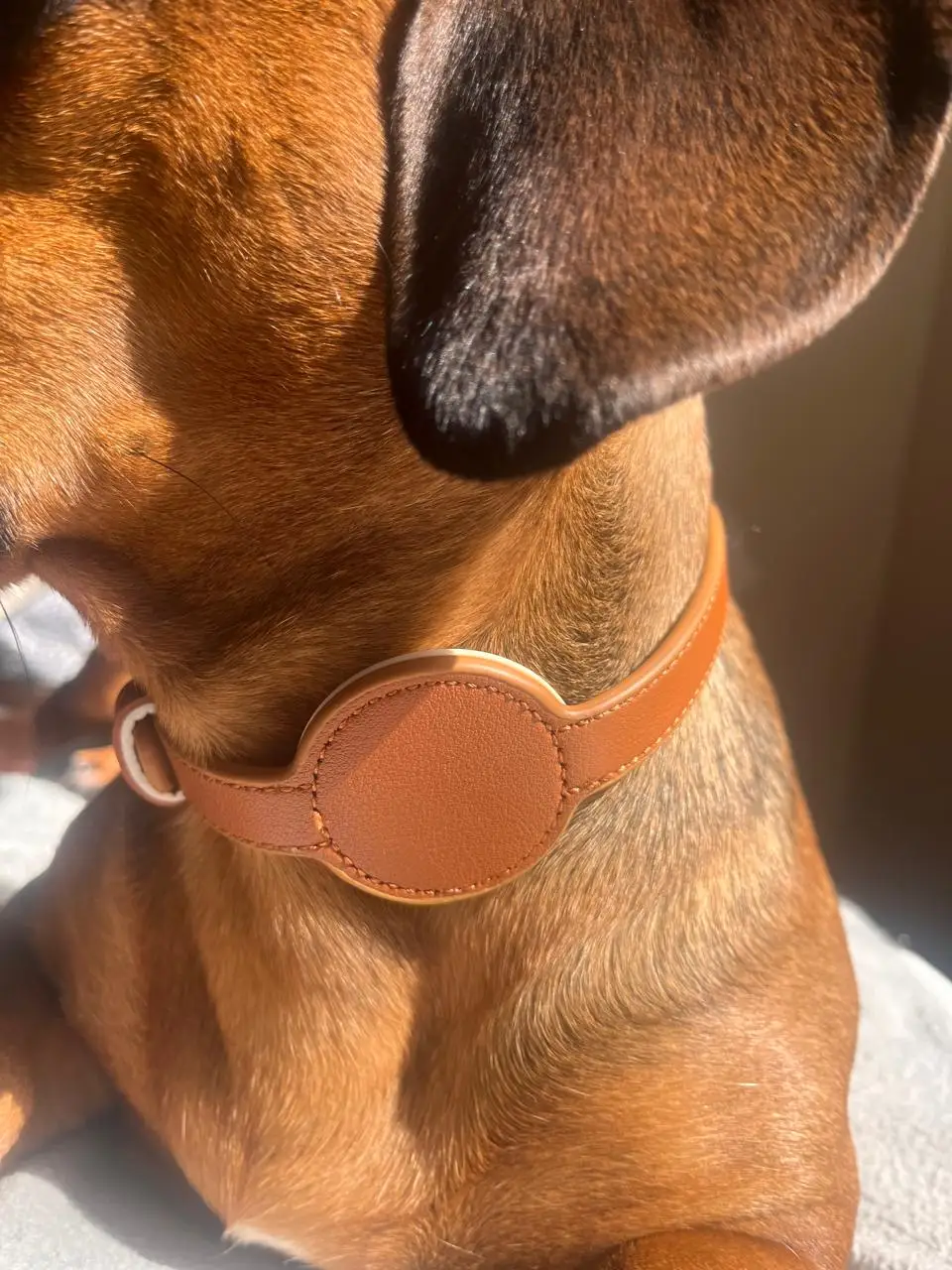 Easily track your dog with our Airtag-compatible collar. It securely holds your Apple Airtag while providing durable comfort for everyday wear and safety.