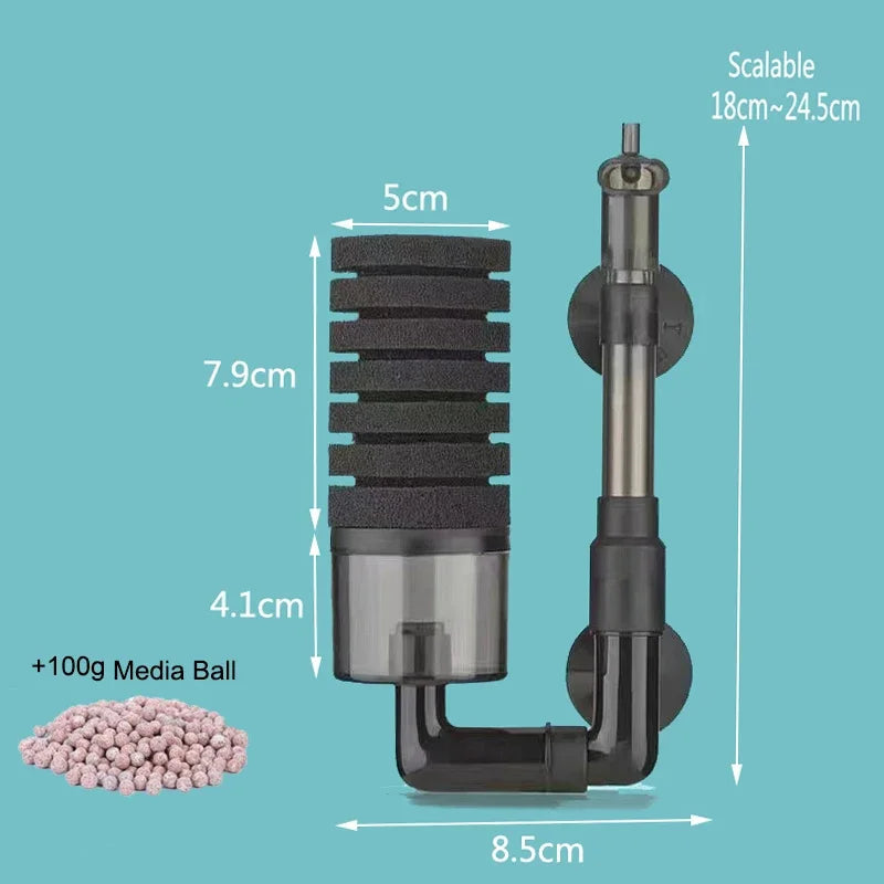 - Included: 1 ร Sponge Filter, 100g Filter Media Balls