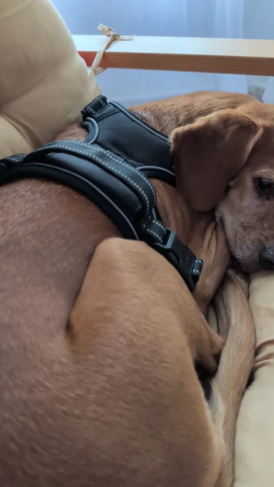 The harness is well padded without causing harm, the size is correct for a Labrador.