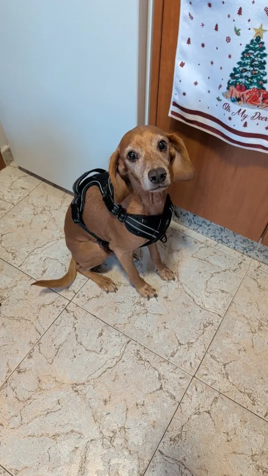 - Check fit regularly β you should be able to fit two fingers between harness and dogβs body.
