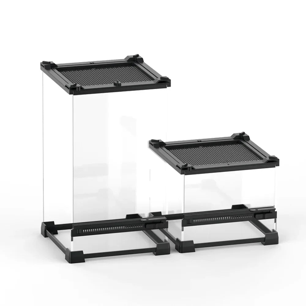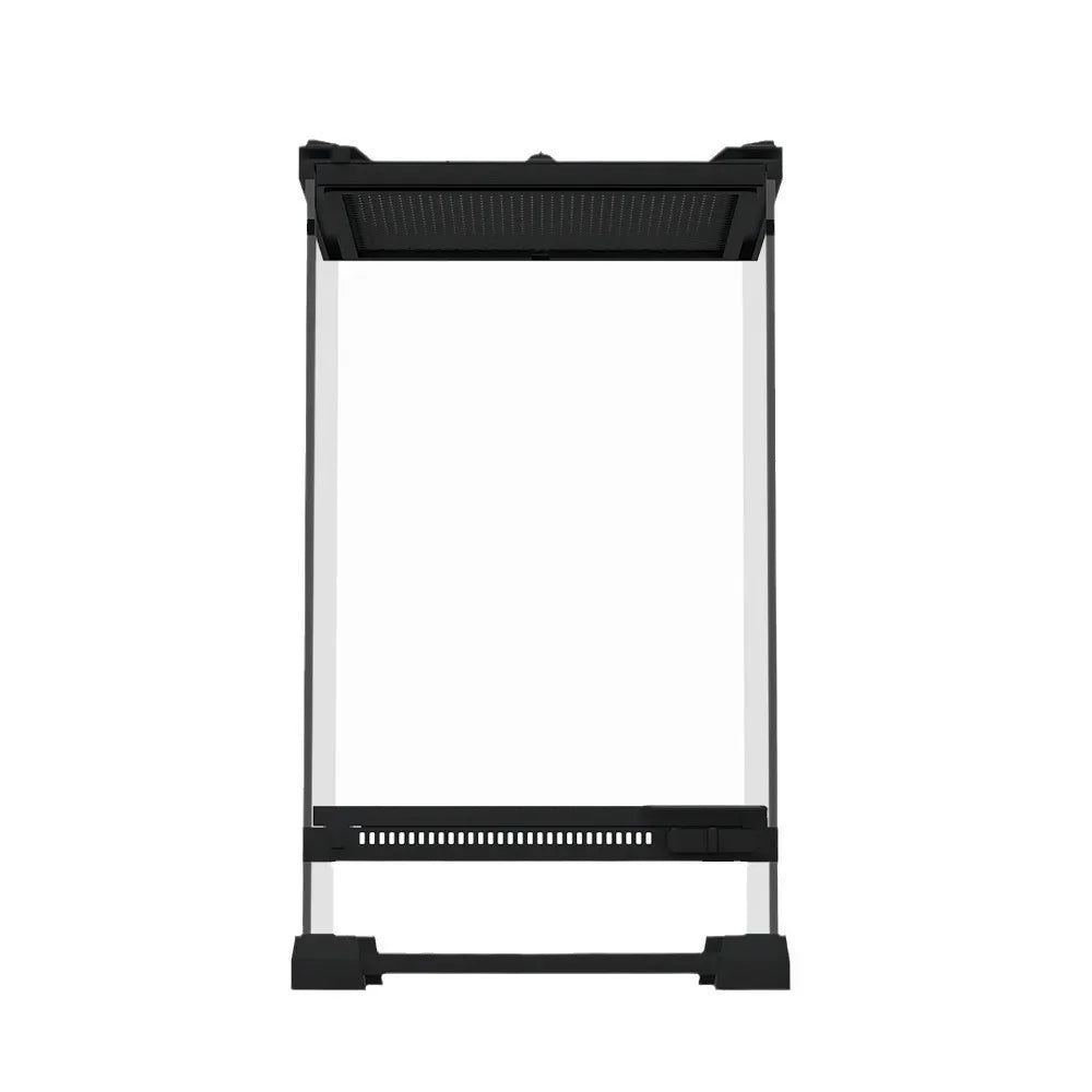 Durable and crystal-clear terrarium designed for lizards, chameleons, and amphibians. Built from high-strength tempered glass with a front door opening and top ventilation for optimal comfort and easy access.