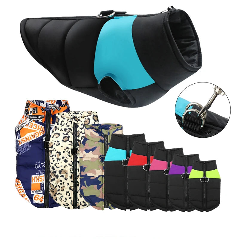 Keep your dog warm, dry, and stylish all winter! This padded waterproof vest with zipper design and built-in D-rings offers comfort, warmth, and convenience for walks in cold weather.