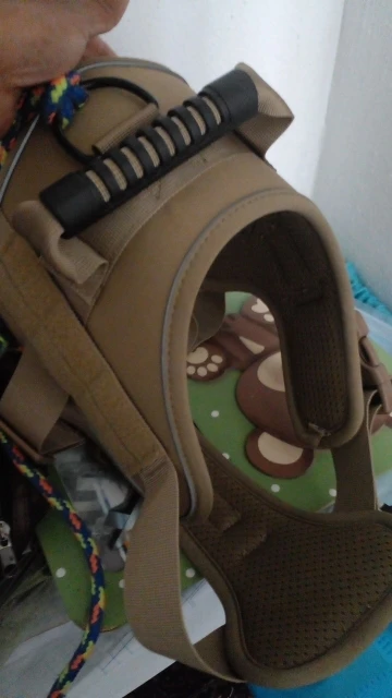 - Check fit regularly — you should be able to fit two fingers between harness and dog’s body.