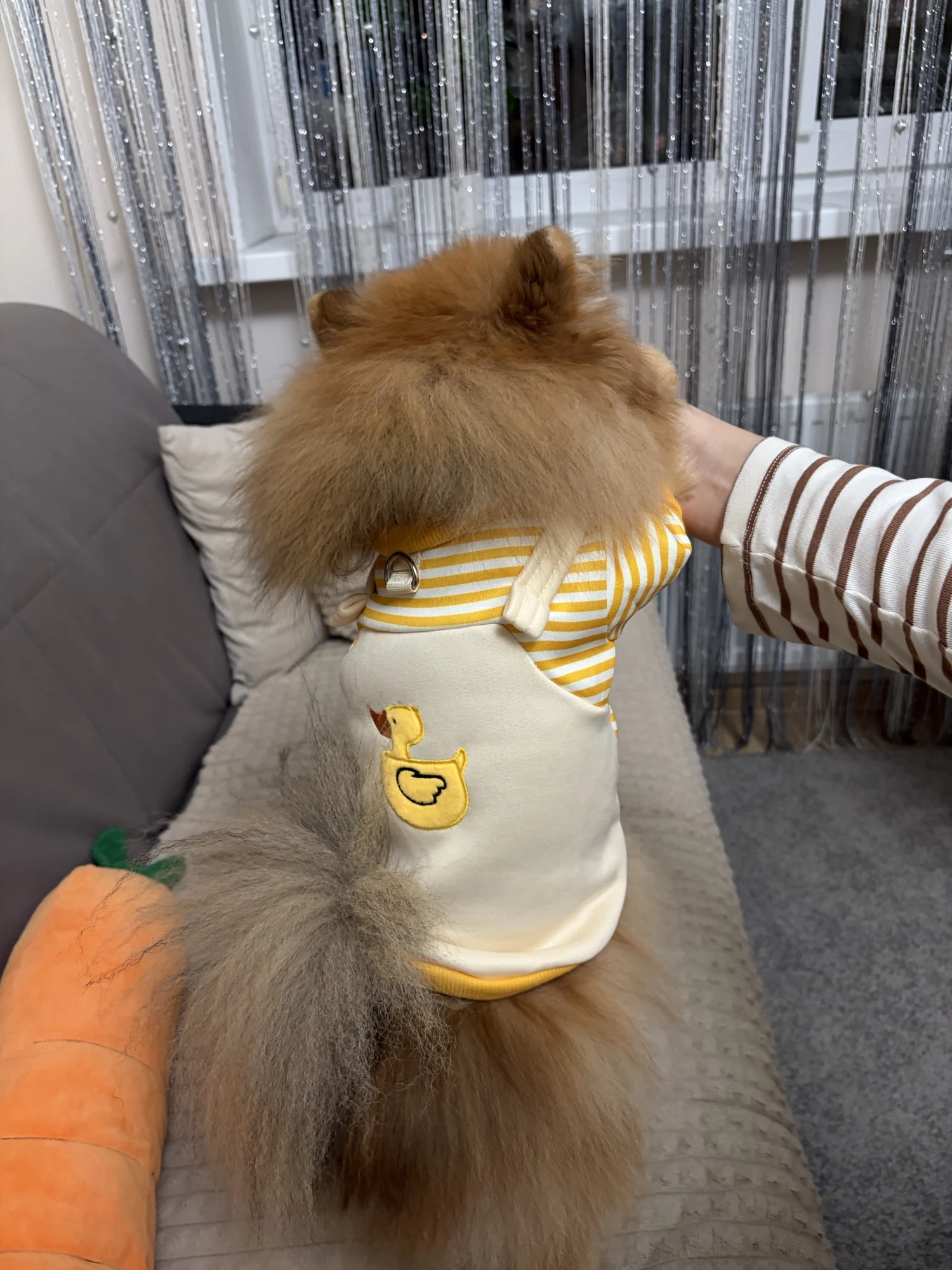 - Put On Gently – Slip clothing over the head or secure straps/fasteners without pulling fur.