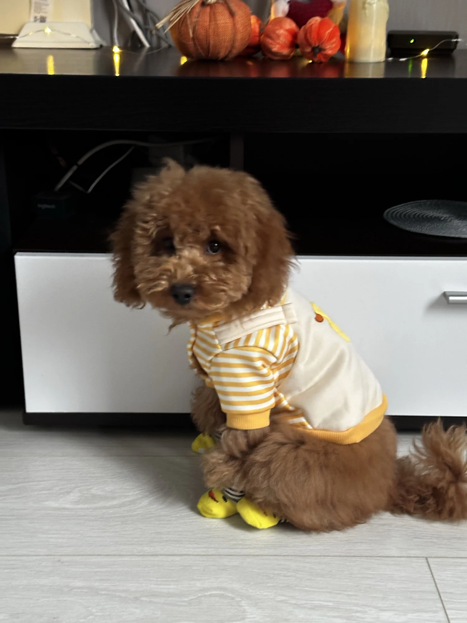Cute and cozy thin autumn/winter dog hoodie made of soft polyester cotton. Features a D-ring for leash attachment, perfect for small to medium dogs and cats, keeping your pet stylish and comfortable.